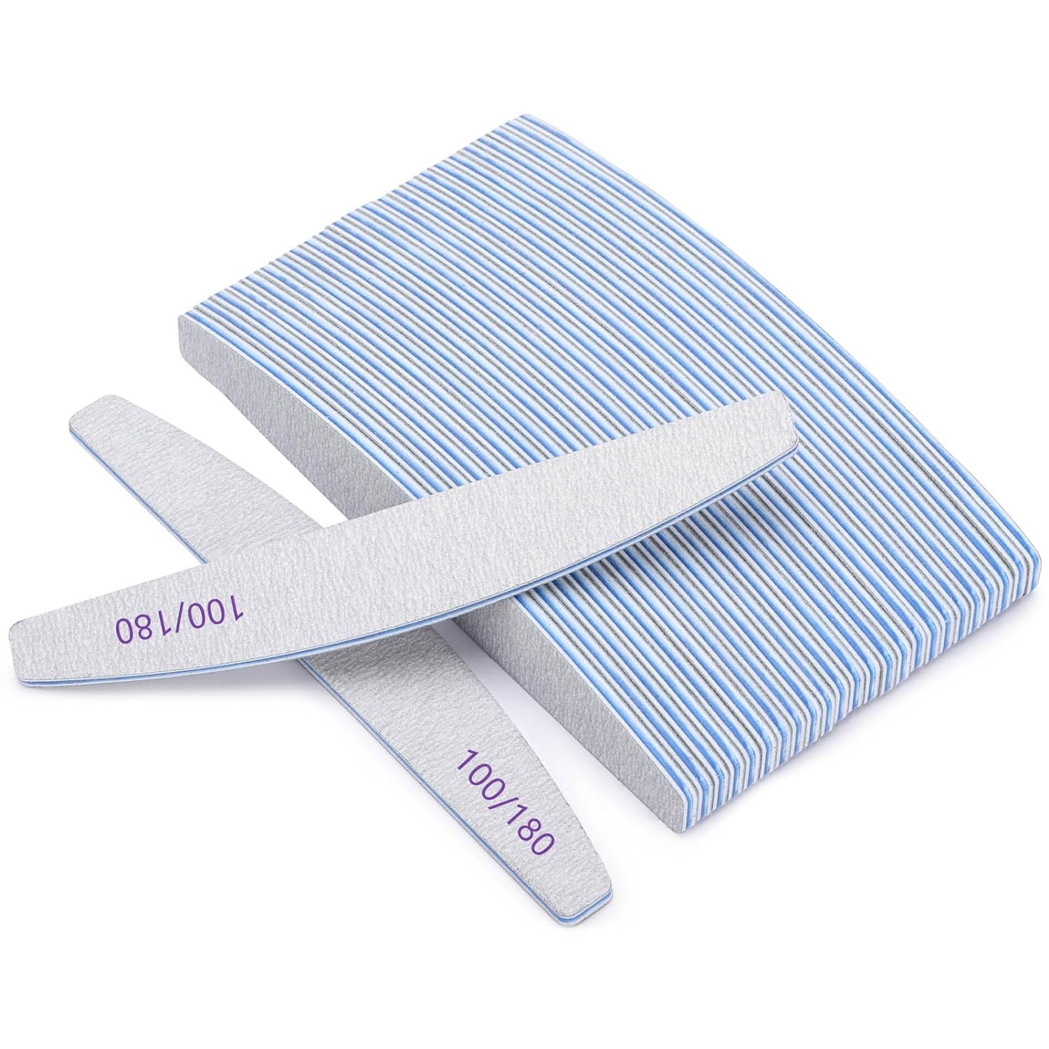 25 Pcs Nail Files for Acrylic Nails 100/180 Grit Coarse and Medium Grit Double Sided Emery Boards Professional Buffering Files