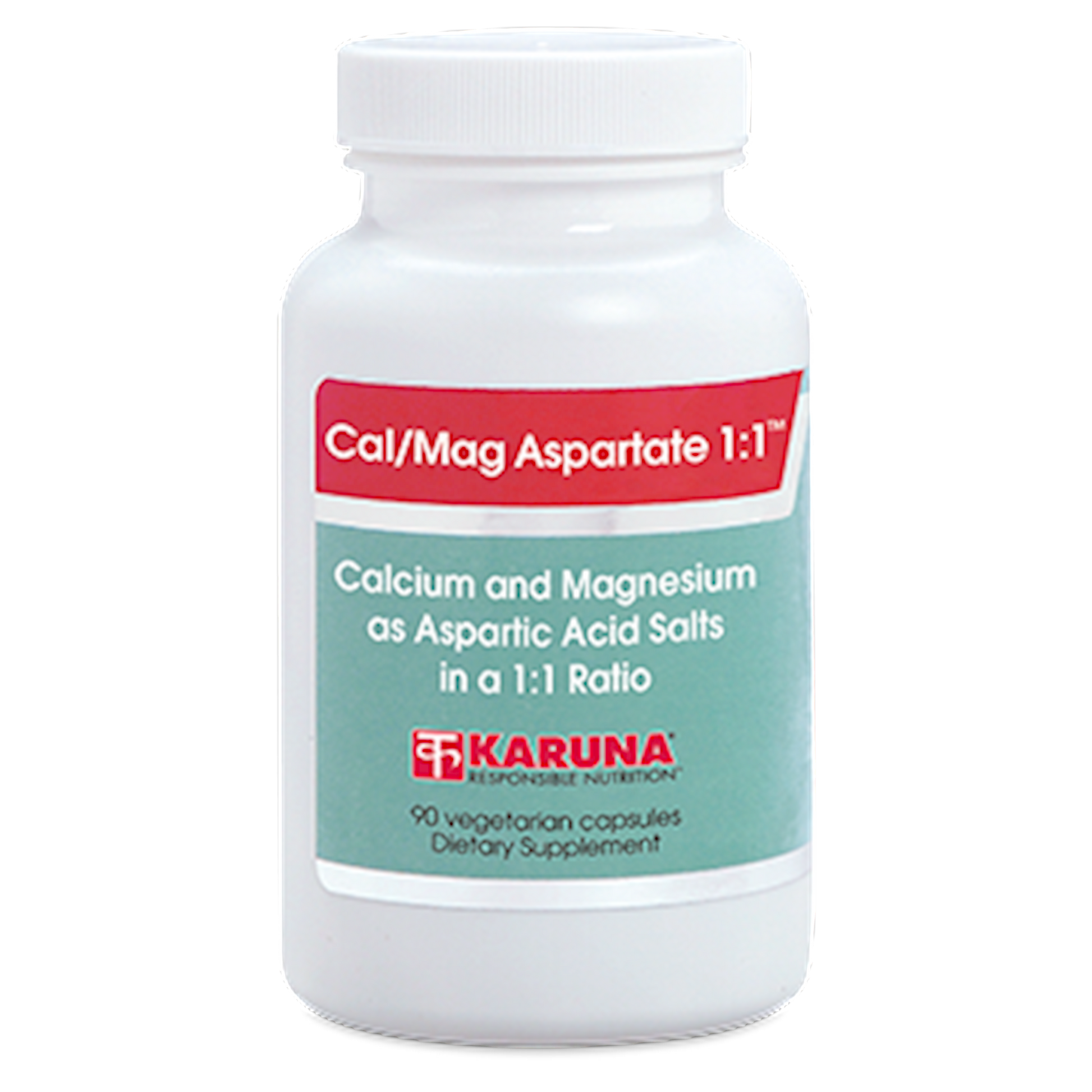 Karuna provides this popular product in two Ca:Mg ratios - 2:1 and 1:1. Both calcium and magnesium are required in significant amounts by humans and many diets are poor in these minerals. Calcium and magnesium play complementary roles together to support skeletal health, neuromuscular activity, optimal vascular tone, and normal menstrual cycle physiology. Aspartic acid, an amino acid, is a particularly efficient mineral transport agent, originally investigated by German researcher Hans Nieper, and additionally supports cellular energy production.*