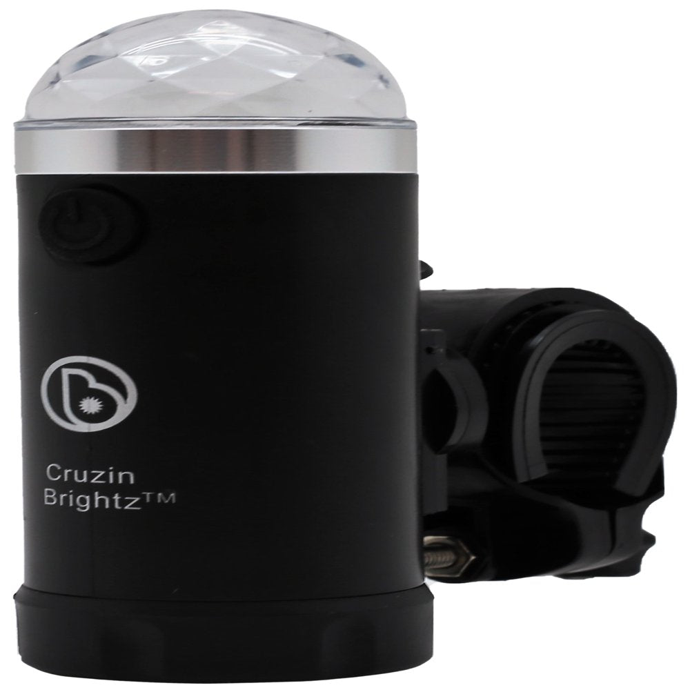 Cruzin Brightz runs on 3 AA batteries, and they easily mount to the handlebars with a quick clamp. Removal is just as easy, so when your ride is over you can take the party inside or put it in a purse or backpack. Red, blue, and green LEDs shine through a lens to create various color combinations and mind-blowing patterns on the pavement.